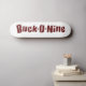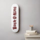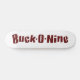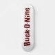 Logotipo do Fanfarrão-o-nove no vermelho com esboço branco na plataforma natural do skate da cor do bordo.