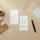 Espessura de 18 pt / Gramatura de 120 lb. Branco suave, textura delicada.