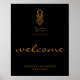 Loja de Roupas Íntimas Boutique de Lingerie Poster de Boas-Vindas. Recurso corset glitter dourado chic em fundo preto. Itens correspondentes disponíveis.