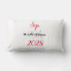 Faça a sua própria almofada de casal com seus nomes em letras maiúsculas pretas e data de casamento em belas letras vermelhas em script sobre um fundo branco crocante. Elegante e sofisticado, é um ótimo presente para casamentos, aniversários ou Natal.