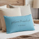 Linda almofada personalizada de presente de casamento na cor azul-céu. Nomes em escrita cursiva conectados por um coração e uma data. Personalize substituindo os nomes de exemplo Jessica e Michael e a data de exemplo por nomes personalizados e uma data significativa para o casal. Celebre o amor do casal com esta linda almofada personalizada. A cor de fundo azul-céu e o texto preto formam uma combinação elegante e brilhante. É um presente encantador para noivado, casamento ou aniversário de casamento, além de ser um lindo presente de casa nova para um casal.