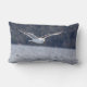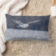 Uma almofada retangular que representa uma gaivota em cheio voo