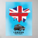 London United kingdom Illustrated map travel poster print, featuring a map of the British capital against a union jack or United kingdom flag.