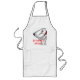 o avental longo branco com PIC do buldogue e "senta-se e come-se! ou então…" texto. Apenas aperfeiçoe para os cozinheiros principiantes que são ainda um bocado incerto sobre seus pratos. Bon Appetit!