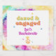 Este adesivo com rótulo de vinho espumante apresenta um fundo de cor gravata brilhante e fonte temática divertida dos anos 70 com o ditado "encanado e engajado". Este rótulo inclui sinais de paz e estrelas de anel de noivado divertido. Este convite é perfeito para a sua festa de solteira hippie dos 70 anos ou fim de semana nobre.