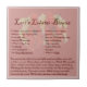 Estes azulejos estão disponíveis em 2 tamanhos, 4,25 pol x 4,25 ou 6 pol x 6 pol. Azulejo-os para a sua nova barra de trás como sotaques; adicione um quadro e ele é trivet ou em uma bela caixa de manutenção de azulejo que certamente surpreende e encanta. Preso por uma ideia de janto, cada azulejo exibe uma receita diferente de sopa a sobremesa. Divertidos e caprichosos, esses azulejos decorados podem ser acessados com Quadros Trivet ou uma bela caixa de manutenção do azulejo. Dê-os como presentes ou guarde-os para si. Está tudo bem.