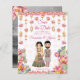 Flores cor-de-rosa com lanternas marroquinas e casamento índio-casal-noiva, salvem o convite de modelo com fotos de casais nas costas.