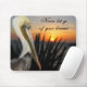 Belo pôr do sol da Califórnia e cabeça castanha pelicana e especiais dizem: "Nunca solte seus sonhos. Você pode personalizar este bocal com suas próprias palavras.