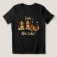 A t-shirt that says, "Love, not labs" with an illustrating of three Beagle puppies playing.