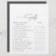 Este chá de panela de roteiro de amor acha que o jogo de hóspedes é perfeito para um chá de casamento simples. O design apresenta uma bela fonte em um fundo branco para embelezar seu evento.