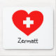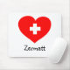 Este tapete zermatt souvenir mousepad / mouse apresenta a bandeira vermelha suíça em forma de coração contra um fundo branco e um slogan 'Zermatt'. Uma simples declaração sobre seu amor por esta bela terra dos Alpes.