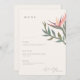 Inspirado pelo pássaro da flor do Paraíso e Ti leaf lei, este design tropical celebra a junção de dois corações que agora florescem como um só. Faça com que todos os detalhes da sua celebração de casamento tropical se sintam especiais e personalizados com este menu personalizável que inclui sua hashtag de casamento.