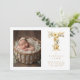 Lovely Gold L Initial with Romantic Floral Design for Newborn Photo Announcement Card.