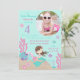 Cartão do convite do aniversário da sereia pequena o quarto com criaturas subaquáticas e uma foto introduzem o modelo.