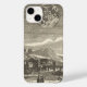 Ilustração vinícola astronomia e desenho antigo de uma paisagem e da lua (luna) no céu noturno, preto e branco, da era renascentista, com estrelas e constelações. Pessoas estão ao lado de um rio, ponte e prédios. Criado em 1683 por Allain Manesson Mallet (1630 - 1706), um cartografo e engenheiro francês.