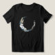 T-shirt com uma ilustração mística. Uma lua azul escura com um contorno fino elegante e flores brancas ao longo das suas bordas.