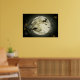 poster de 30" x 20" com a imagem de uma lua de cheio luminosa, um corvo pregado numa silhueta de um galho de árvore e morcegos voando no céu noturno. Ver arte correspondente em paredes acrílicas, arte em paredes metálicas, impressão de canvas e decalque de parede. Veja toda a coleção de Poster do Halloween na categoria ART, POSTER & WALL DECALS na seção HOLIDAYS.