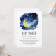 Celebre seu pequeno astro com este convite de chá de bebê sonhador. Com um design moderno e caprichoso, este convite apresenta uma nuvem em aquarela azul-marinho acentuada por uma lua crescente em amarelo-dourado e estrelas cintilantes. Perfeito para uma celebração doce e simples, este design captura a magia de dar as boas-vindas a um bebê menino.