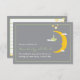 Use este adorável chá de fraldas temático "Lua e Estrelas" com convites correspondentes, cartões de mesa, livrarias, selos, autocolantes, etiquetas de endereço, etiquetas de endereço de retorno, cartões de aconselhamento e cartões de produto. com