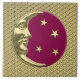 A lua e as estrelas clássicas do art deco projetam no ouro escovado no vinho/ameixa de Borgonha do olhar do esmalte, com um fundo metálico de Deco do ouro