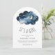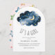 Esta Lua e Estrelas É um Convite para Chás de fraldas para Meninas que apresenta um tema lua e estrelas, é ideal para uma simples celebração. A design branca moderna apresenta uma forma de nuvem de marinho azul-d-água, enfeitada com uma lua crescente amarela e estrelas dispersas.