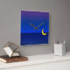 Uma gravura de arte antiga de uma noite estrelada com uma lua crescente brilhando contra um fundo de blues e violetas. Clique em Personalizar para adicionar seu nome ou mensagem.