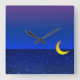 Lua e Estrelas Relógio de Parede à Noite