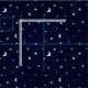 Um design mínimo que caracteriza um teste padrão de luas e de estrelas crescentes brancas minúsculas em um fundo azul da meia-noite.