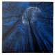 Esta design apresenta uma bela imagem de uma lua de cheio atrás de árvores altas. O céu é azul escuro.