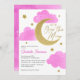 Lua Rosa e Estrelas Convite para Chá de fraldas