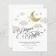 Visitantes diretos onde deixar os bilhetes para a rifa de fralda com este cartaz, com uma lua de ouro, estrelas e nuvens. Certifique-se de ver o resto desta coleção exclusiva para ver mais itens para o seu dia especial!