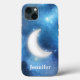 Lua Trimestre Contra Céu Magnético Azul com Nome