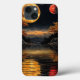 Lua vermelha sobre um lago