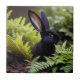 Foto nas samambaias é Lúcifer, o pequeno coelhinho preto
