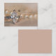 Personalize o elegante Cartão Marquise Diamond Ring Wedding Place com o nome pessoal do seu convidado e a mesa na qual eles estarão sentados na sua recepção de festa de noivado, chá de panela ou casamento. Este clássico cartão de escolta personalizado apresenta uma fotografia pintada digitalmente de um anel de noivado de diamante cortado e colar de pérolas brancas.