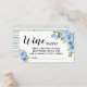 Bilhete Azul de Vinho Floral, Traga uma garrafa para os recém-casados, jogo de atividade do Chá de panela. Clique em "Editar design" para personalizar ou modificar o layout (alterar texto, cor da fonte, estilo da fonte ). HOT TO PLAY: Envie um bilhete de bife de vinho e-mail juntamente com o convite para que seu convidado saiba trazer uma garrafa de vinho para ganhar um prêmio, o convidado escreverá seu nome no ingresso, no chá, atribua uma área para os convidados deixarem bilhetes de rifa!