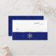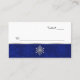 Local de recepção do casamento elegante / cartão de escolta feito em branco, com um padrão azul em floco de neve azul, borrado em prata, correndo na parte inferior da frente. Gráficos de um floco de neve com joias prateadas decoram a parte inferior média da placa. Mantenha o texto como está ou exclua-o para uma placa de vazio. Produtos correspondentes disponíveis.