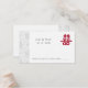 O padrão floral chinês e o símbolo da Felicidade Dupla na frente e no verso do design. Totalmente personalizável, altere texto/fonte/tamanho do texto/cor do texto para atender às suas necessidades. Este design é exibido atualmente em um estoque de papel em linha. Você pode optar por um estoque de cartão branco simples para uma opção mais orçamentária.