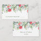 . Este design apresenta uma ilustração em aquarela de Poinsettia com um arranjo de folhas verdes, raminhos de pinheiro e bagas vermelhas.