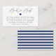 Chamada de assinatura elegante "Livros para Bebê", cartão de solicitação de livro de chá de fraldas. Os cartões apresentam sotaque cardíaco azul marinho e marinho correspondente e padrão de faixa branca de apoio.