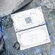 O website do casamento elegante insere cartões com o código QR com o recurso de código Vintage ornamental frame border design com na moda em cor azul empoeirada, simples e clássica, excelente para o casamento clássico moderno, casamento vintage romântico e casamento tradicional formal.
