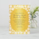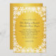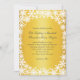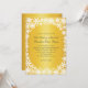 Flocos de neve brancos elegantes em um fundo de ouro ilustrado decoram este convite para o casamento no inverno. Se forem necessários itens adicionais nesta coleção, entre em contato conosco em prettyfancyinvites@gmail.com com sua solicitação.