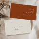 Este Deserto Simples O cartão de casamento de Terracotta é exatamente o que você está procurando para completar seu casamento de boho russo moderno. Perfeito para uma vibração ocidental minimalista ou para uma sensação boêmica retrorreflectora. O guião branco natural mínimo verdadeiramente pop com este fundo colorido do outono. Você pode optar por mantê-lo como está ou personalizá-lo com seu próprio trabalho de arte ou fotos. Role pela coleção para selecionar outros itens que farão o seu casamento outono cantar com autenticidade!