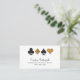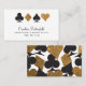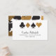 Os trajes de cartas em preto e ouro faux glitter parecem afiados neste cartão de visita branco ideal para jogadores de cartas profissionais, funcionários de cassino e fãs do glitz e glamour da vida noturna de Las Vegas. O padrão do backer pode ser removido para adicionar mais informações ou uma foto clicando no link personalizar mais abaixo do texto do modelo.