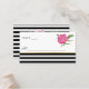 Belo recepção de casamento de escolta/cartão de lugar feito em branco, com placas gráficas bonito de cor d'água de um pedreiro rosa, no canto superior direito e faixas pretas e brancas, na parte inferior. Todo o texto está pronto para personalizar, para atender às suas necessidades de casamento. Os produtos de casamento correspondentes estão disponíveis.