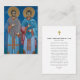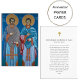 Os santos Cosmas e Damian eram irmãos gêmeos árabes e médicos da Cilicia que prestavam cuidados médicos gratuitos, ganhando o nome de "mercenários". Enquanto cristãos devotos, a sua prática de fé aberta levou à sua detenção e execução durante a perseguição cristã dioclética por volta do início do século IV. São venerados como santos paternais da medicina, cirurgiões e farmacêuticos. Os cartões de oração são um belo e abençoado presente para se dar, aos seus amigos e família e à sua igreja.