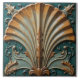 Um design de celas de costura estilizado no centro, com uma paleta colorida de chalé, ouro e creme. A concha é composta por trechos nervurados que saem de um caule central, com a tinta dourada aparecendo aflita, revelando creme embaixo. O fundo é lacado, adornado com ornamentado, padrões giratórios e motivos florais em ouro e creme. O estilo geral lembra os detalhes arquitetônicos antigos, com uma textura levemente curada que acrescenta ao seu encanto antigo.