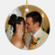 Um ornamento bonito para recentemente um casal do wed. Caracteriza um casal do joaninha dos desenhos animados que guardara um coração na parte dianteira. O texto customizável está na parte inferior. O outro lado tem um espaço para sua foto feita sob encomenda. Grande presente do casamento ou do Natal.