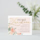 Chá de panela moderno de lua de noiva, com uma escrita falsa em folha de ouro contra uma camada rosa esbranquiçada com lindas peônias de cor d'água e rosas em tons de pêssego e creme num canto. Seus detalhes são mostrados com uma na moda de tipografia simples. Como parte da seleção do orçamento aqui no Zazzle, estes convites não vêm com envelopes nem ajustado de forma suave em um envelope de tamanho padrão. O tamanho mais próximo é A6, mas haverá um intervalo de aproximadamente meio polegada. Se não se importa com a falta de humor, você poderia usar envelopes A6 tão disponíveis. Caso contrário, esse design pode ser transferido para um formato padrão 5x7 (que vem com envelopes) usando a ferramenta de transferência design. Como guia geral, a partir do momento do escrevendo, 100 convites orçamentários (incluindo um desconto por volume) custariam cerca de US$ 39, enquanto 100 convites padrão 5x7, incluindo envelopes, custariam aproximadamente US$ 135. Sua quilometragem pode variar dependendo dos códigos de promocionais disponíveis do Zazzle, das vendas em todo o site ou das mudanças nos preços.