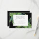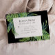 Este design apresenta folhagem tropical aquosa, incluindo luxuosa, monstera verde e palmeiras, circundando um quadro branco retangular sobre fundo preto. Personalize-o com a sua escolha de texto em fontes de sans serif pretas. O reverso é preto sólido.